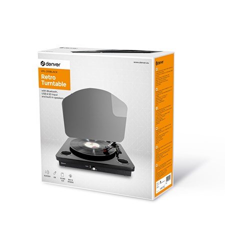 Built-in speakers, phono output, plays 33 1/3, 45 & 78RPM vinyls, USB/SD card MP3 playback & Recording, Bluetooth function