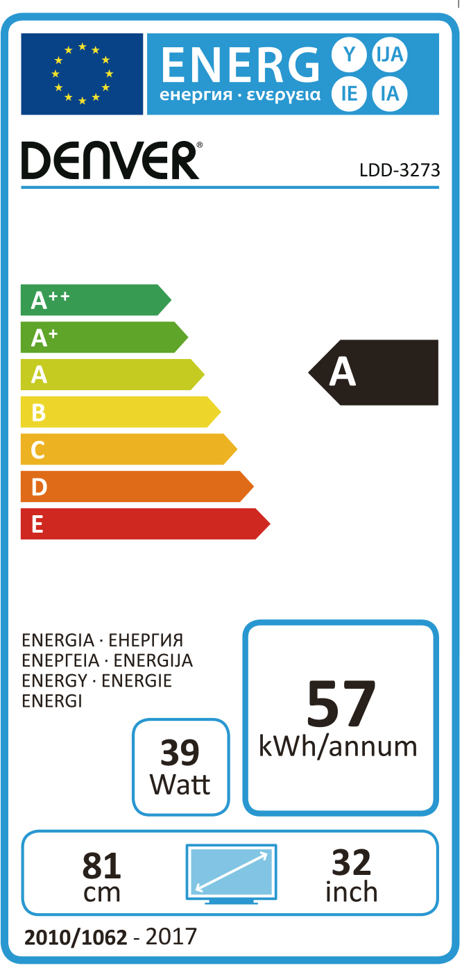 32” HD READY LED TV with DVB-T2 (H.265 HEVC), DVB-S2 & DVB-C tuner, analogue tuner & built-in DVD player