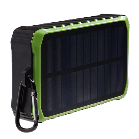 Powerbank with 10000mAh battery inside, Solar cells for charging, hand crank dynamo
