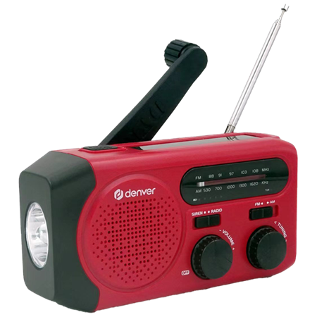 Solar cells, hand crank dynamo, AM, FM Radio, USB for charging, SOS sound, Flashlight